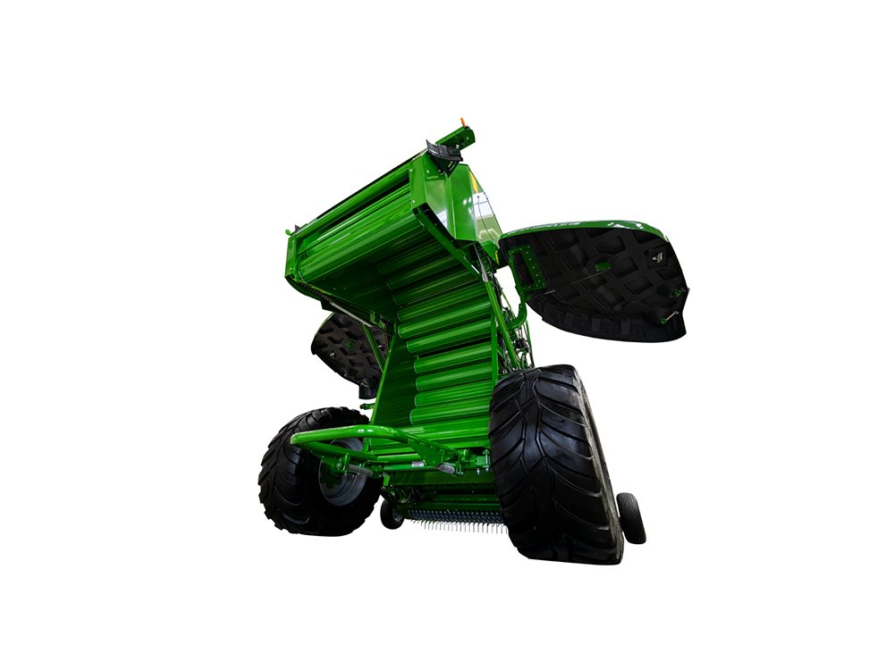 - 2,1 m pločio cinkuotą rinktuvą. Šis rinktuvas pakelia net pačią trumpiausią presuojamą masę. Rinktuvo kraštuose esančios sraigės tolygiai paduoda masę į smulkintuvą.