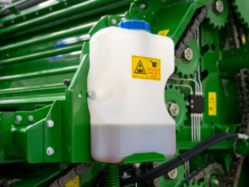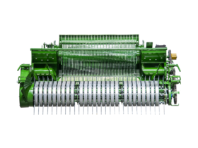 - Padalinto sukimo pavarų dėžę. Kairė pavarų dėžės pusė suka presavimo kameros volelius, o dešinė pusė suka rinktuvą ir smulkintuvą. Ši sistema užtikrina tiesioginį trumpą perdavimą ir optimalų energijos pasiskirstymą.