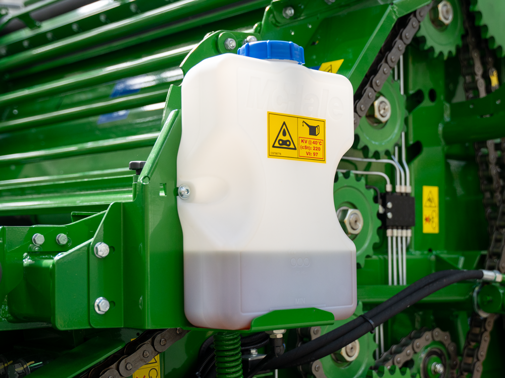 - Aukštos kokybės sustiprintas grandines. Pagrindinė pavaros grandinė yra maksimalaus stiprumo grandinė – 100H. Volelių varomosios grandinės yra 20B tipo. Tiekimo rotoriaus grandinė yra 16B-2 tipo. Visos rinktuvo grandinės yra ASA-60H tipo.