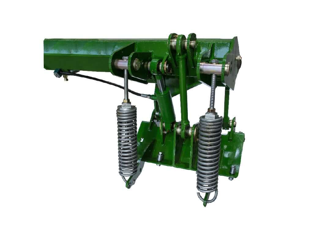 - Šienapjovės atlenkimo atgal apsauga. Galinių šienapjovių pakabos spyruoklės iš karto reaguoja į žemės kontūrus, pjovimo stalai juda aukštyn-žemyn, peršokdami mažas kliūtis, kas užtikrina aukštos kokybės pjovimą net dirbant dideliu greičiu. Tačiau yra tikimybė atsitrenkti į stambų nejudantį objektą. Šiuo atveju suveikia šienapjovės atlenkimo atgal apsauga – nuo smūgio išsikabina pakabinimo sijos fiksatorius.